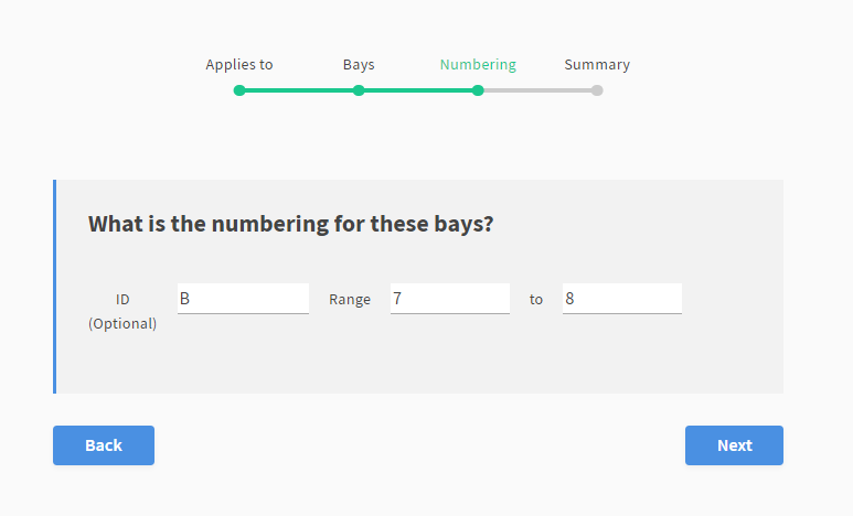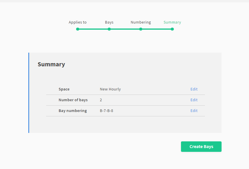 To configure bay allocation you need to create bays in the customer management portal. A bay is a single parking space within a space block. You can configure bays so that these are allocated to parkers when they book a parking space in a space block.