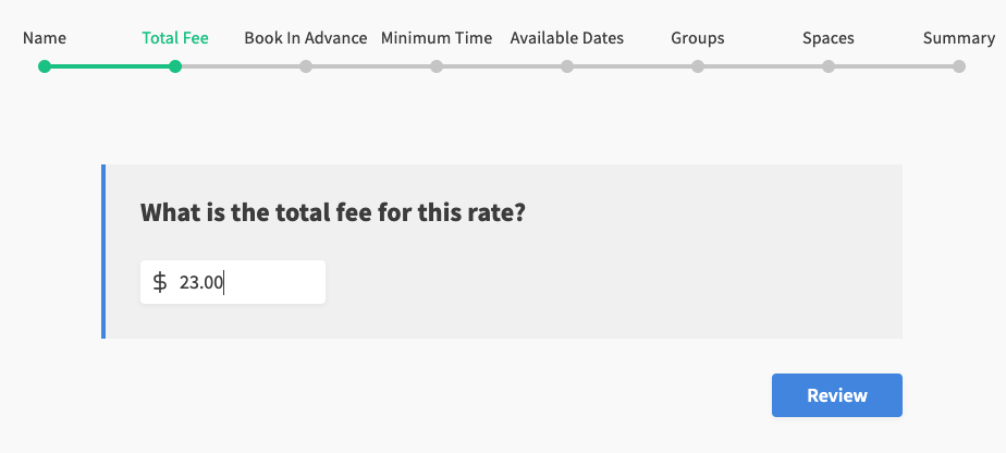Note: The total fee is the amount of fees per unit. If your booking type is monthly, the total fee is $x per month.