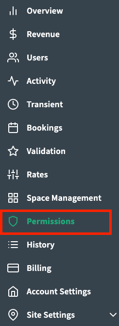 To do this, select the 'Permissions' tab from the left navigation menu.