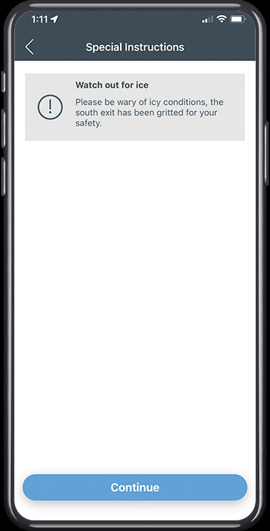 Inform the parker of safe routes to follow i.e., On an especially icy day, if you have gritted one exit, you can direct the parker to use the gritted exit and watch for icy conditions.