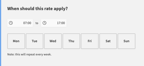 This is a rate that has a start time and an end time as well as an applicable set of days of the week.